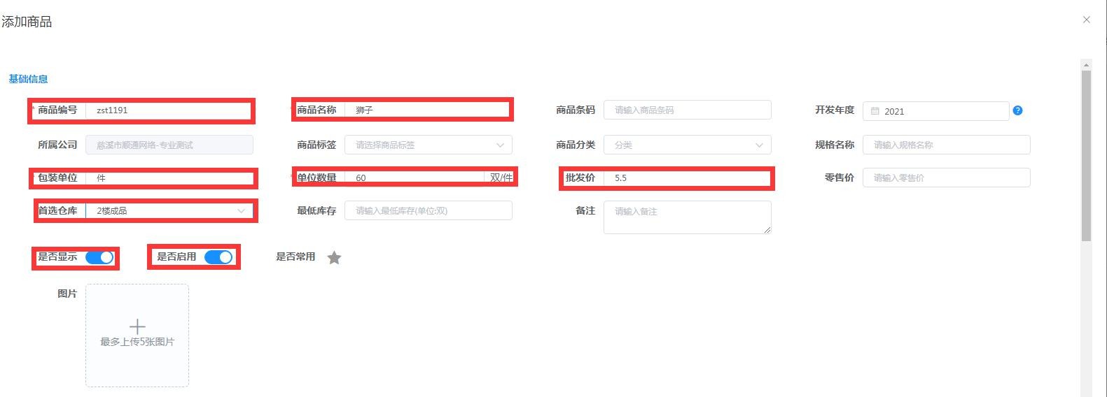 备注:红色圈住为必填项(是否显示,启用,根据本公司情况而定)
