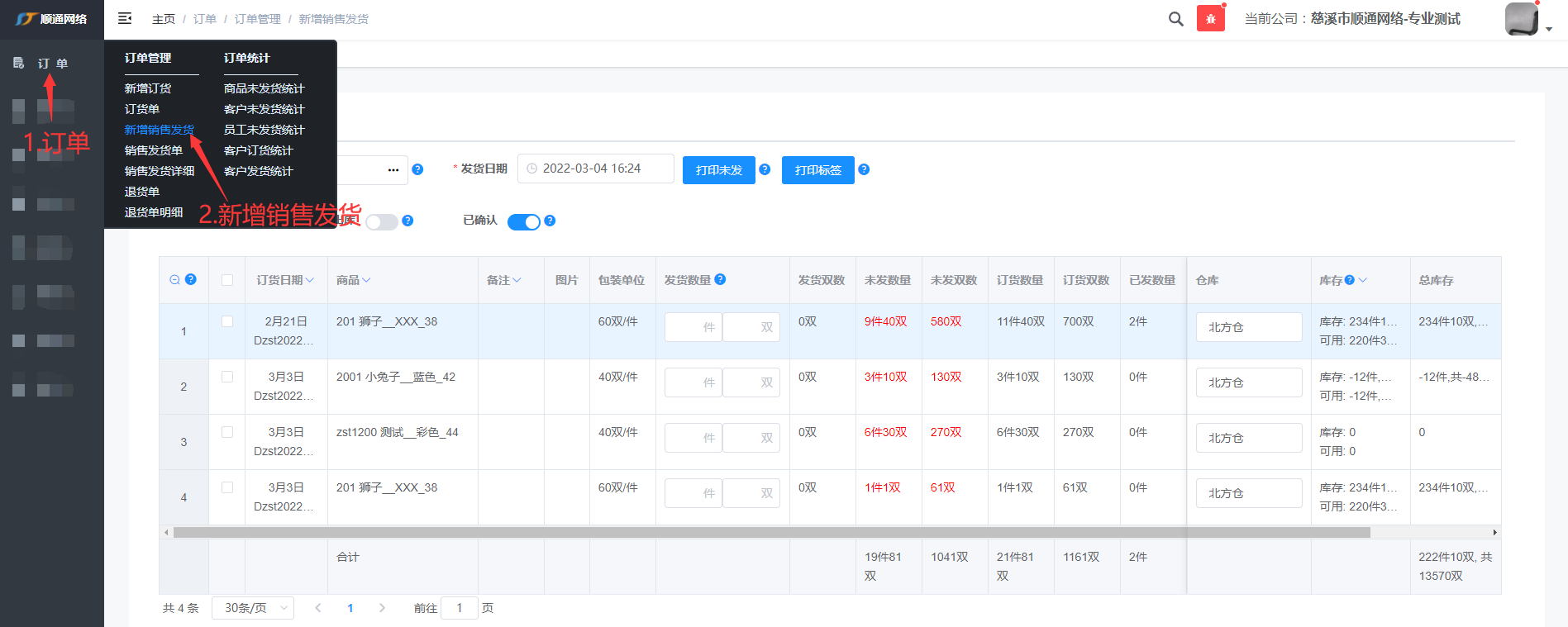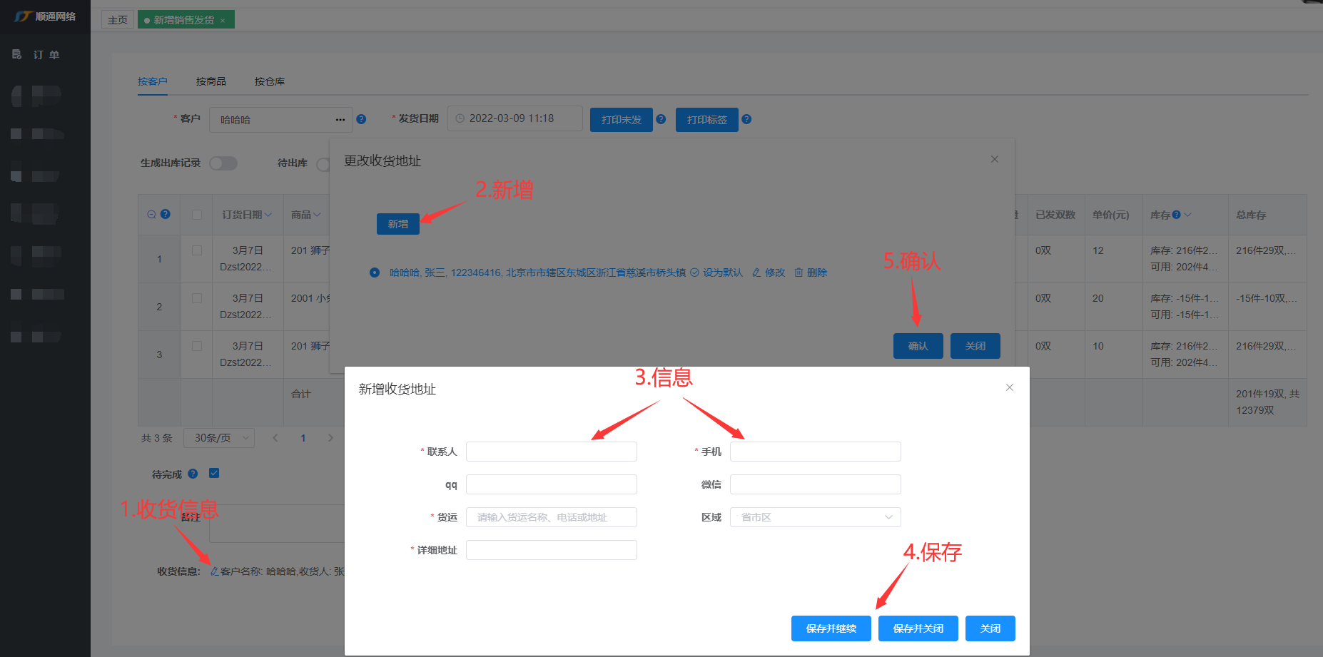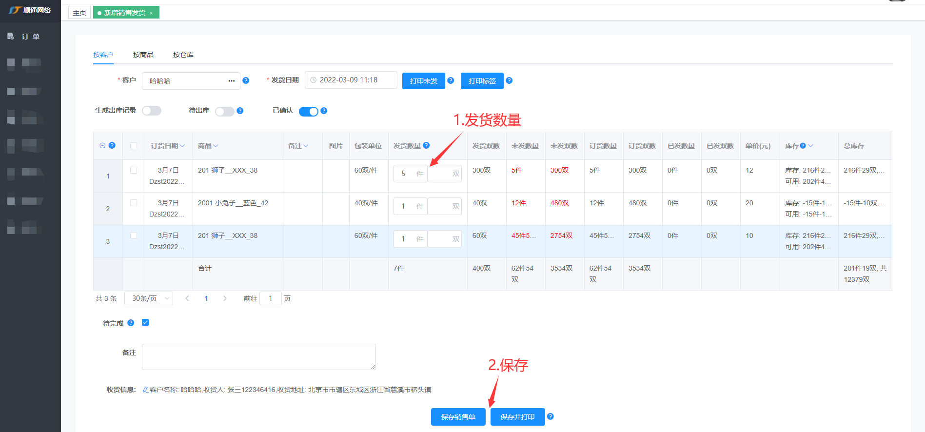 新增销售发货