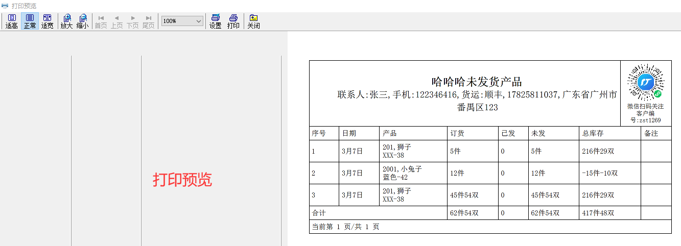 打印客户的收货标签
