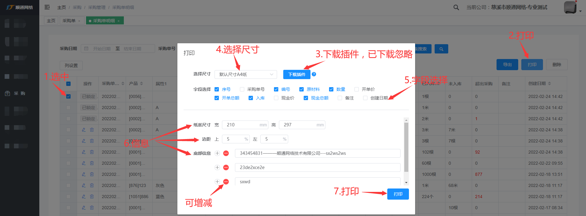 1.打印必需下载插件 2.底部信息可增减