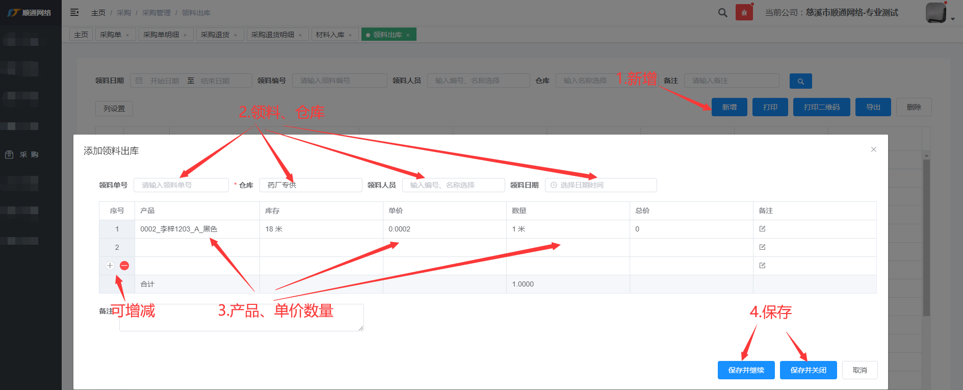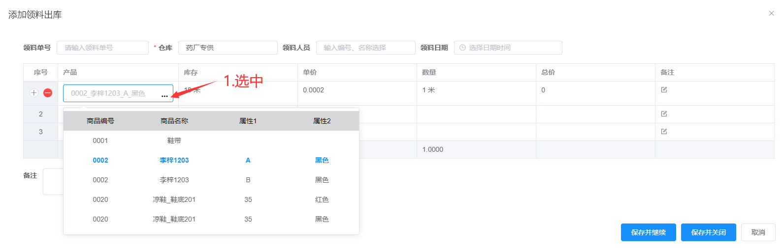 领料出库录入