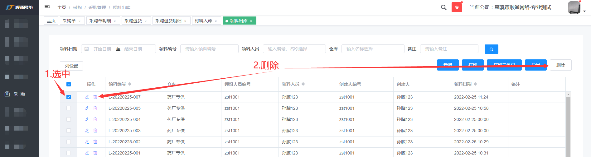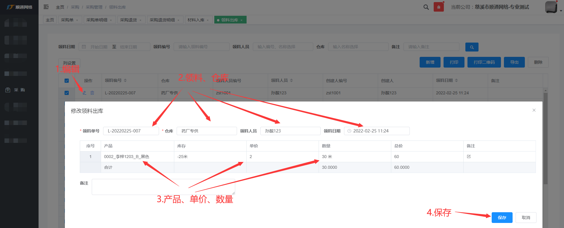 一.领料出库