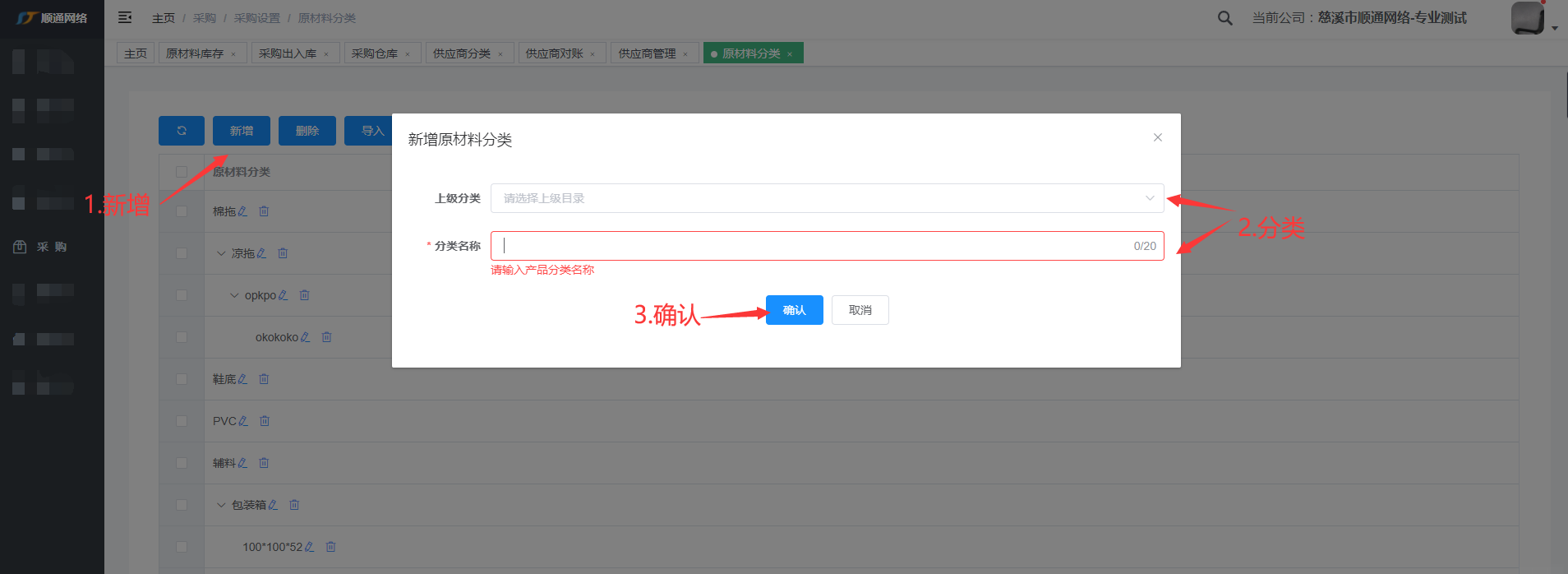 原材料分类录入