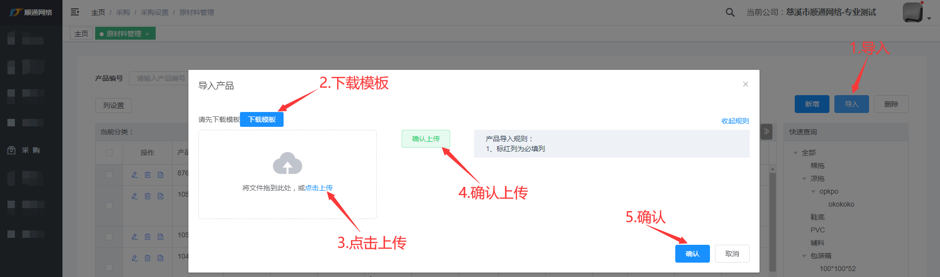 注意:保存模板上传。产品导入规则:1.标红列为必填列