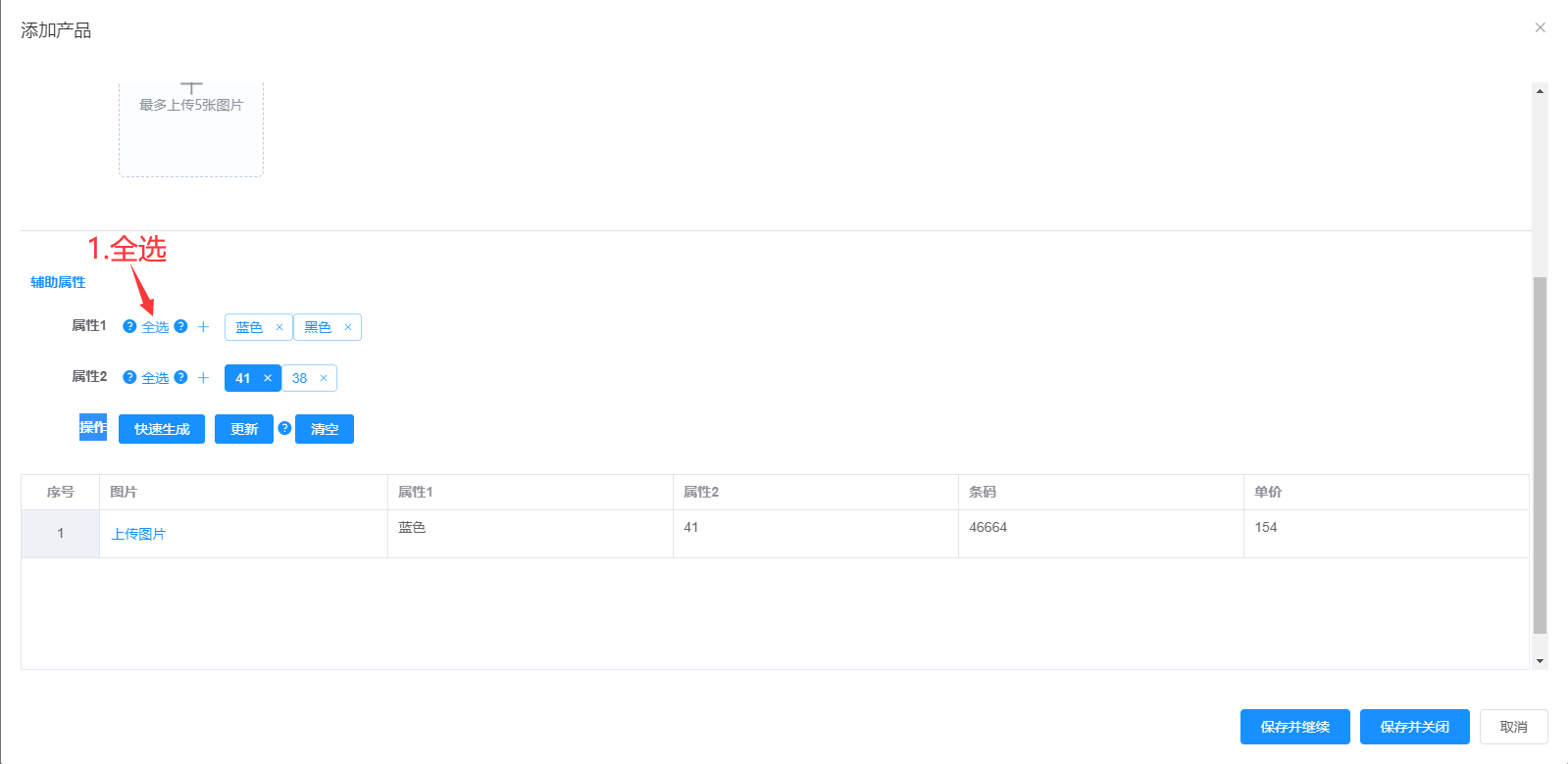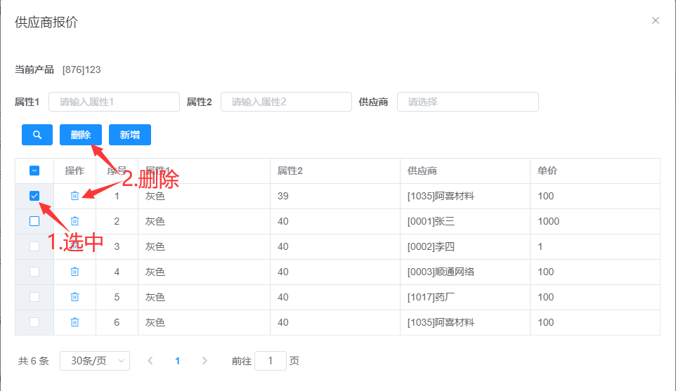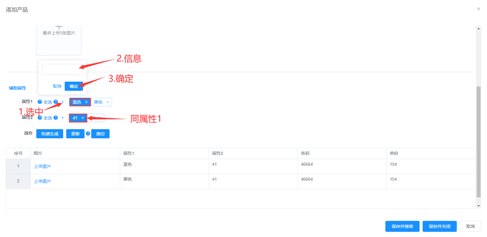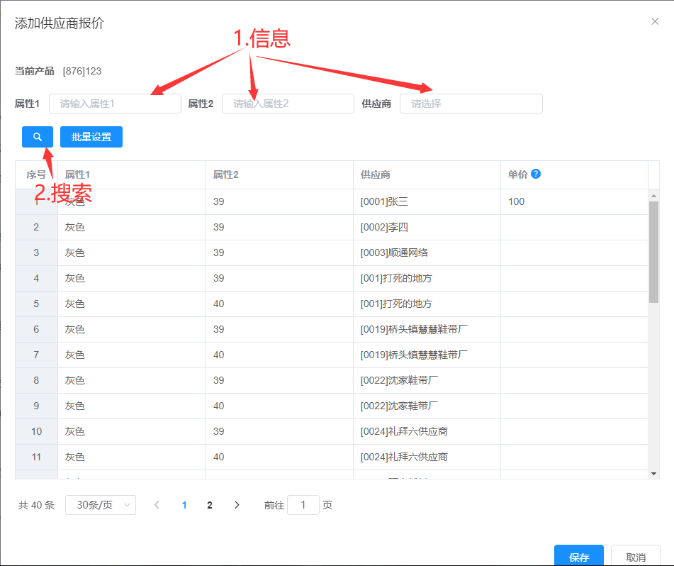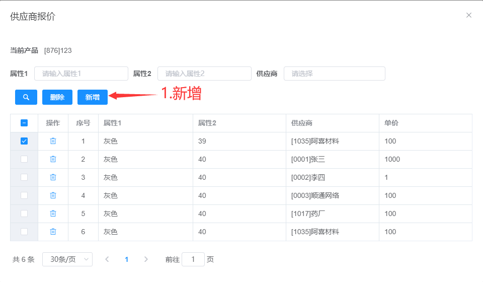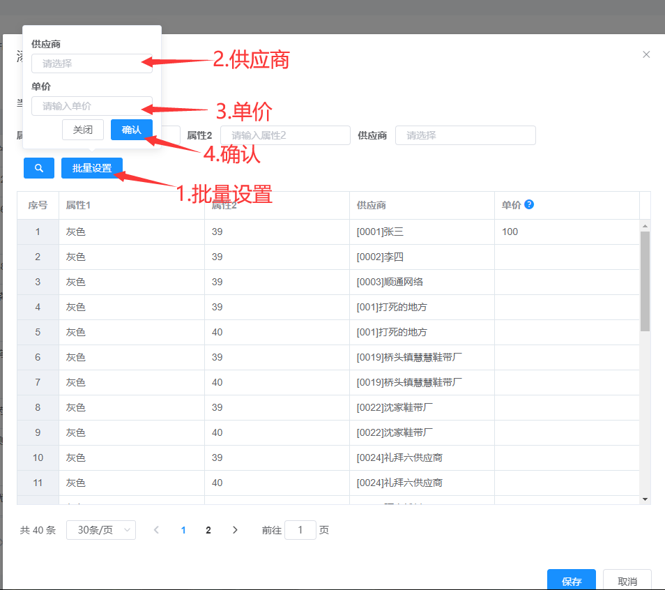 属性1、属性2、供应商可多选