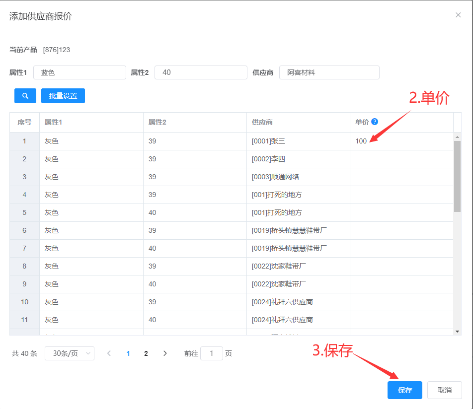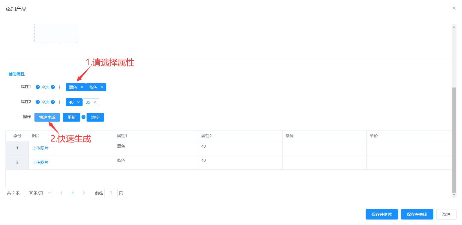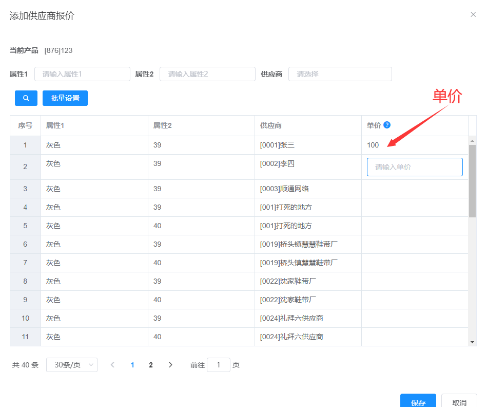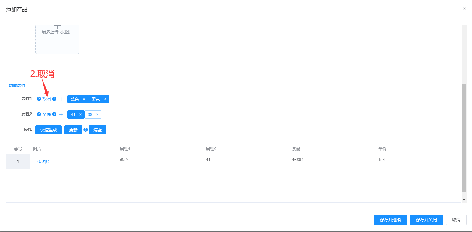属性1、属性2、供应商可多选