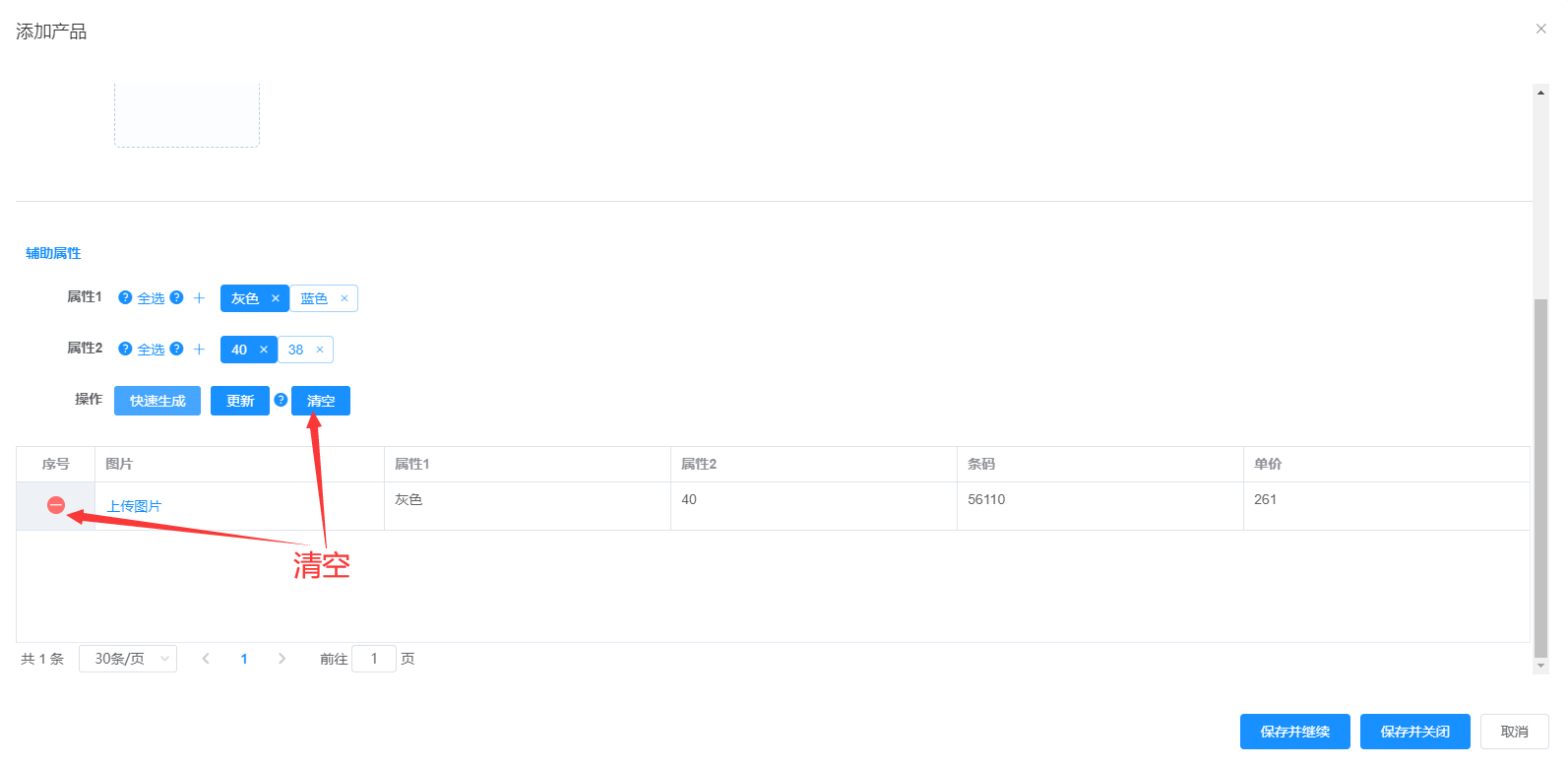 1.清空所有的产品2.序号对单个产品删减