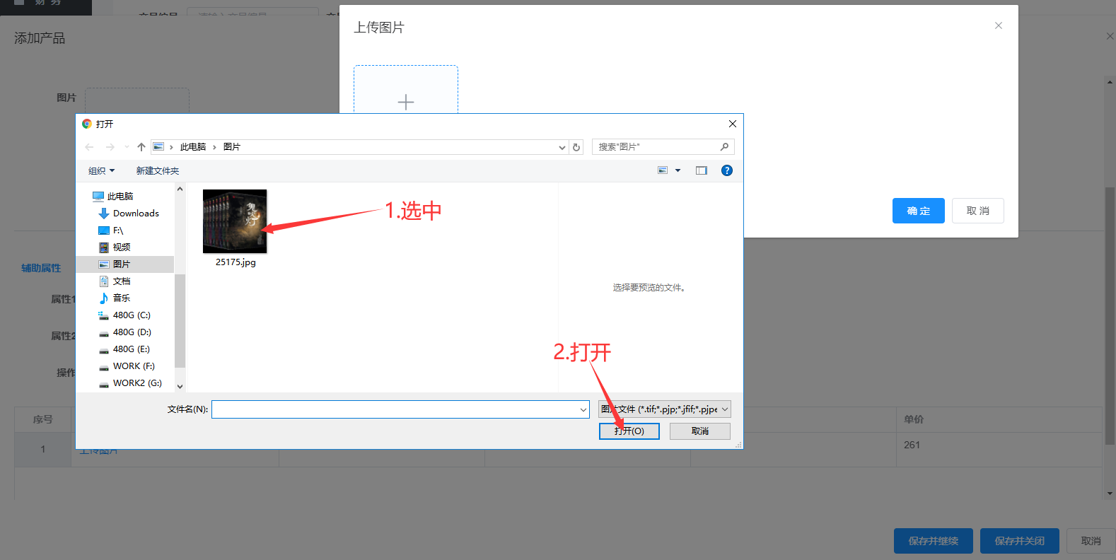 1.选中单个产品上传图片2.选中左边全部产品上传图片