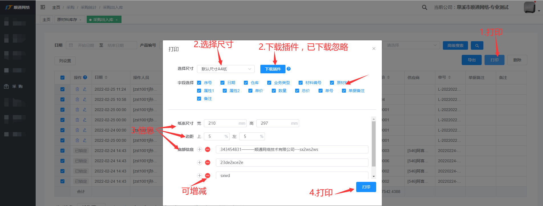 1.打印必需下载插件 2.底部信息可增减