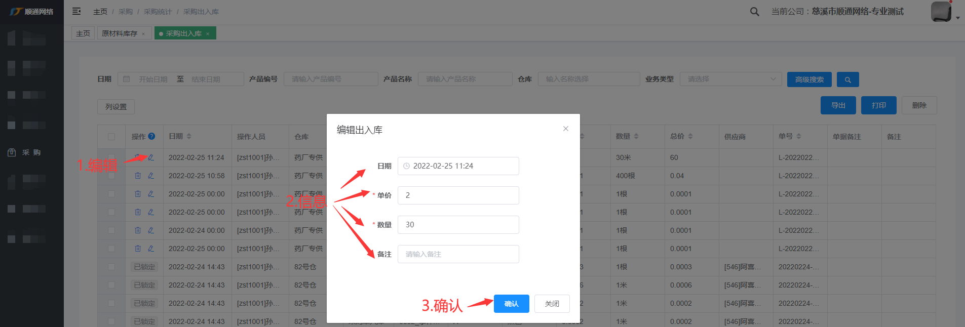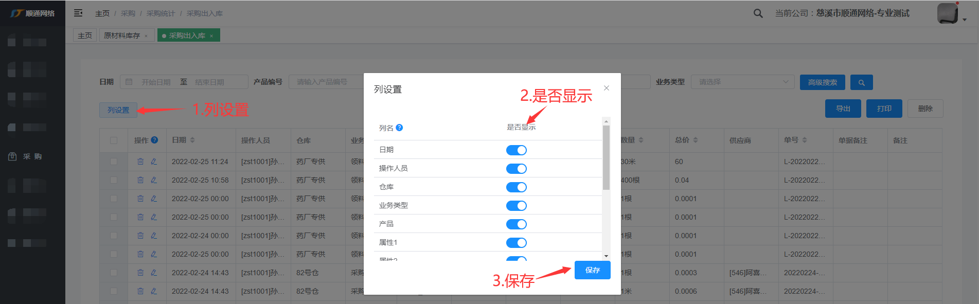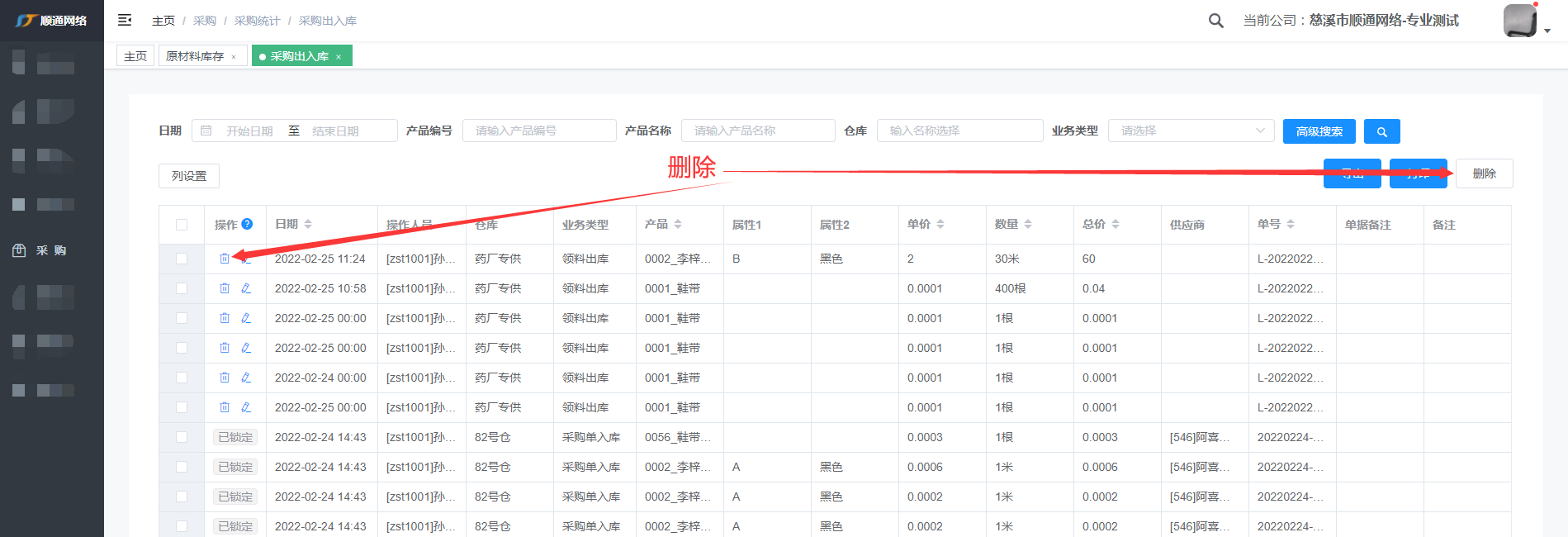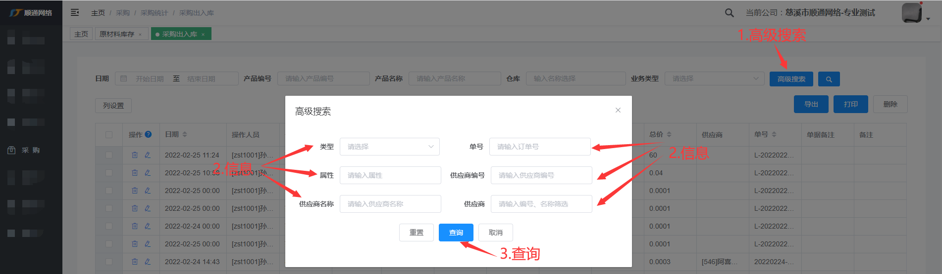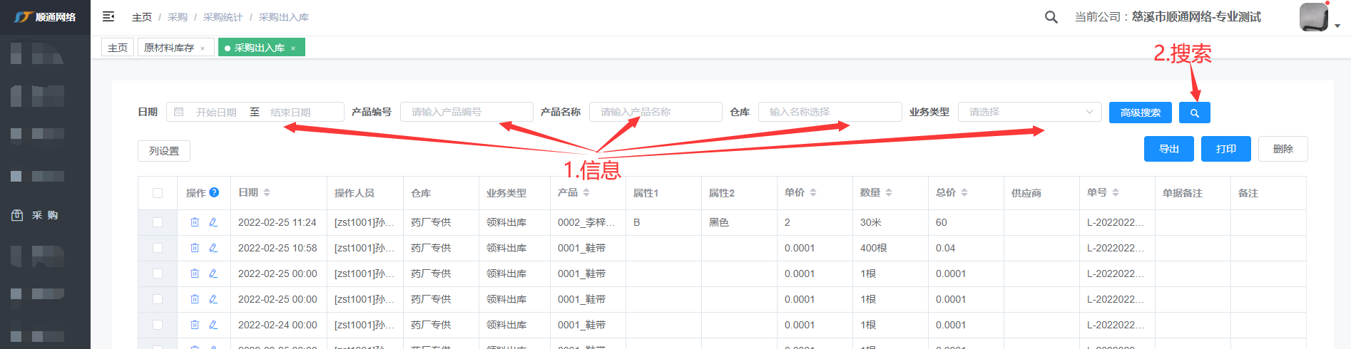 采购出入库查询