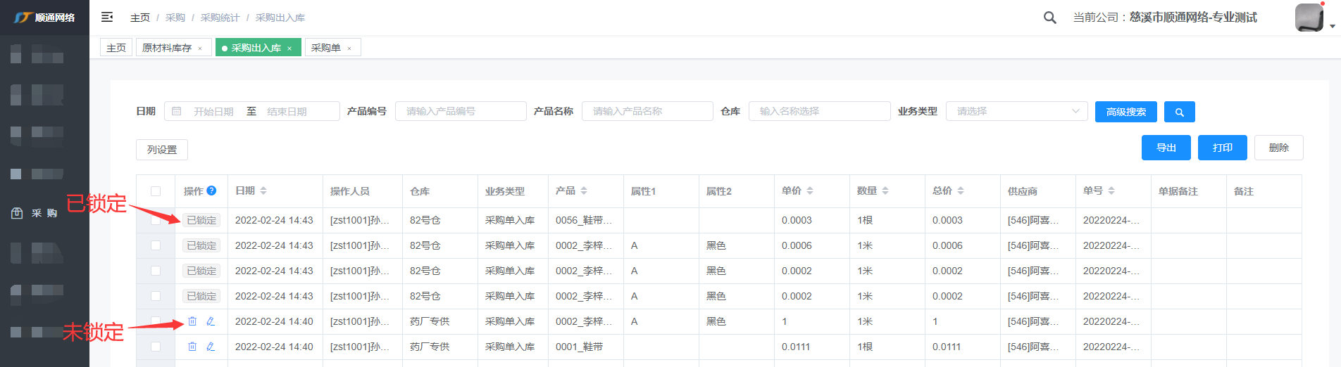若采购单已锁定,则对应的采购入库记录不可编辑和删除