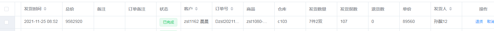 7.     在销售发货详细中查看发货结果。