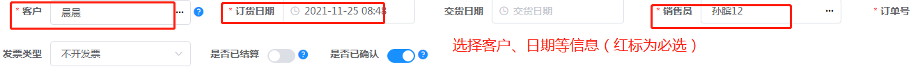 2.     选择客户、日期、销售员等信息。
