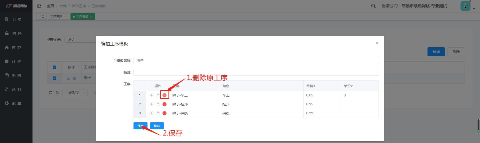 2. 编辑工序模板