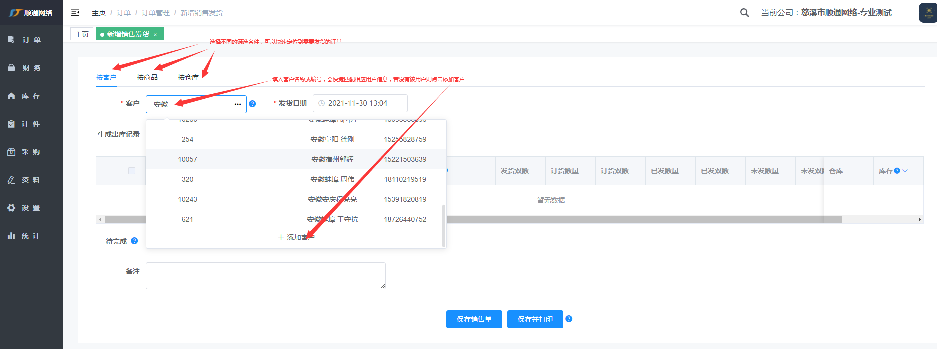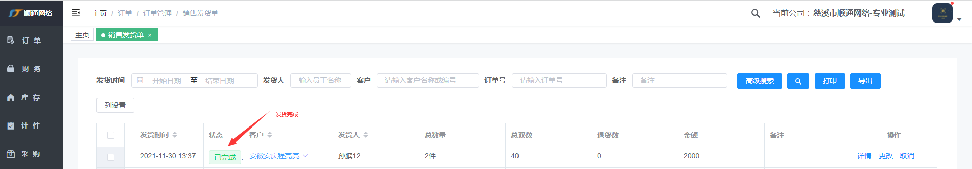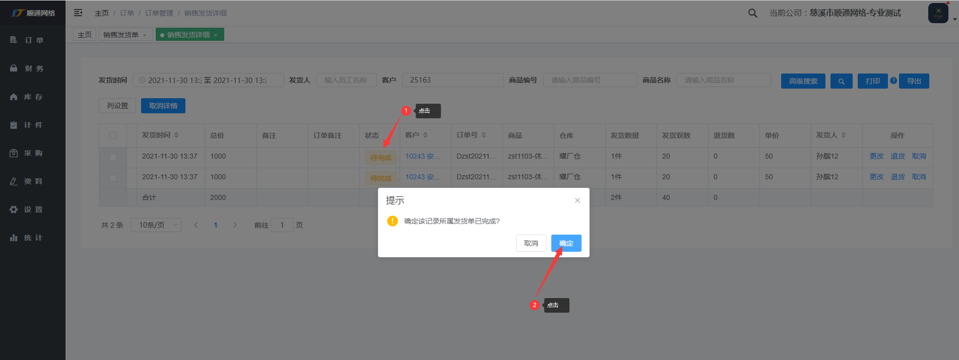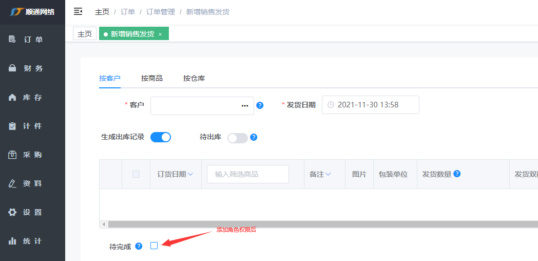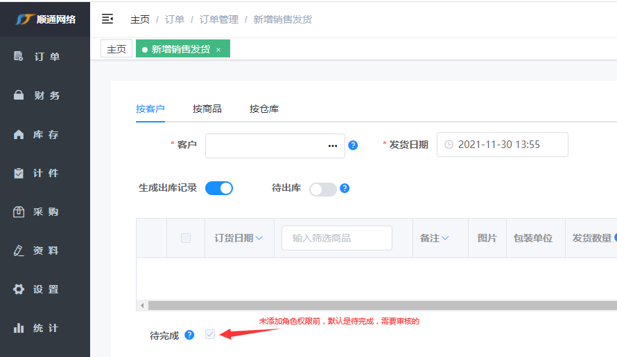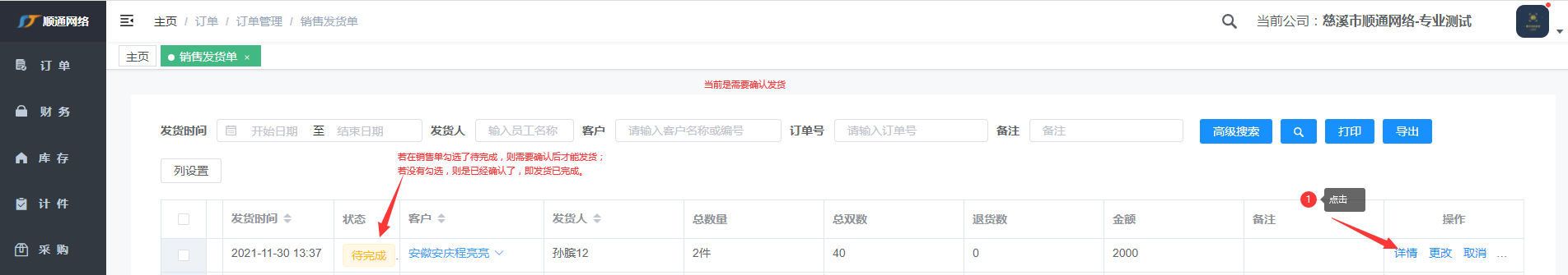 在pc端进行发货,从仓库里进行确认发货。