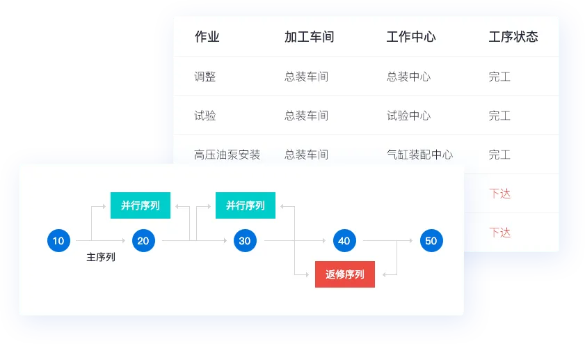 为企业提供从生成工序计划、工序排产、工序拆分、工序补卡、工序派工、工序汇报、工序转移、到产品入库等车间业务处理全过程监督与控制,协助企业精细化管理掌握车间各项制造活动信息,管理生产进度